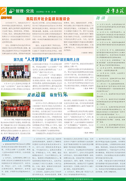 1 月 11 日,海淀区卫生计生委医联 体考核团来我院进行老年康复医联体年 度工作检查。