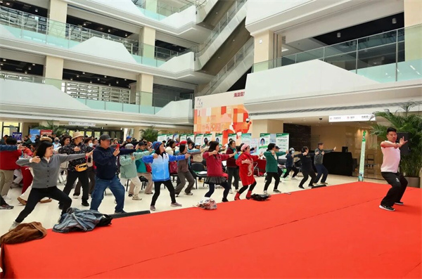 太极拳、八段锦教学人气高涨。现任北京市朝阳区酒仙桥街道办事处太极拳队教练兼领队的职业武术教练王文龙老师,手把手教授群众太极拳及八段锦的一招一式,纠正动作,细致讲解功法要领,现场几十余名老人跟随学习,逐步掌握适合日常锻炼的养生技能。