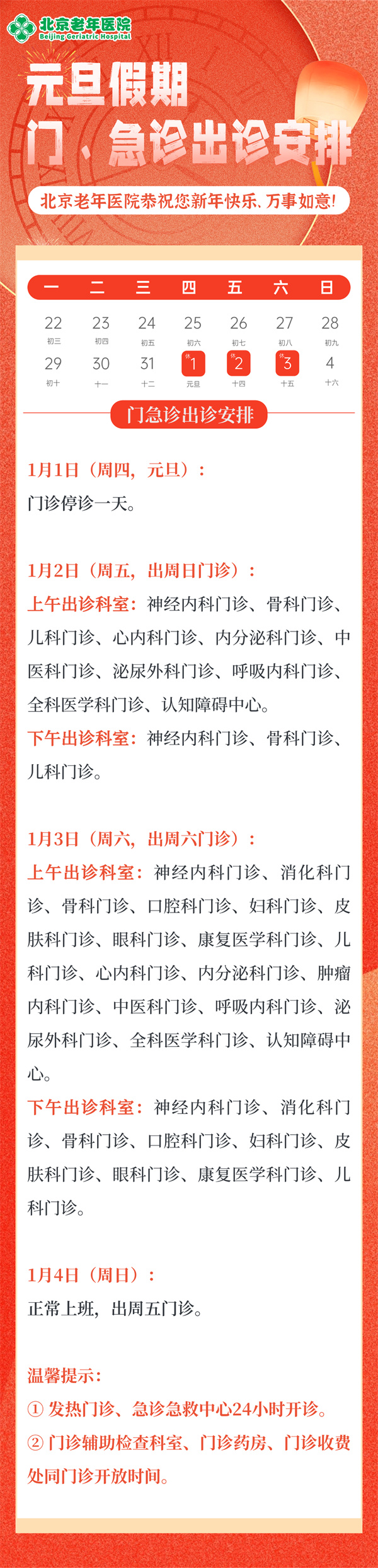 北京老年医院2026年元旦假期门、急诊出诊安排