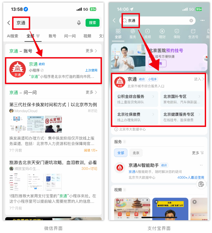 使用 微信 或 支付宝 搜素“京通”小程序,点击进入首界面。