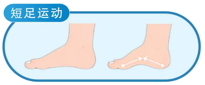 坐姿或站姿都可以,双脚平放在地面上,尝试在不弯曲脚趾的前提下,靠足核心的力量将足弓“缩短”,即想象拉近脚后跟、前脚掌的距离,让足弓慢慢拱起。(健康人群进行4周短足运动后,足弓塌陷便可减轻,平衡能力也有所提高。)